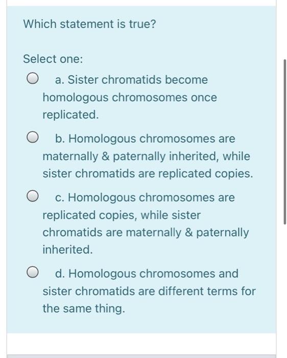 Solved Which Statement Is True Select One A Sister Chegg Com